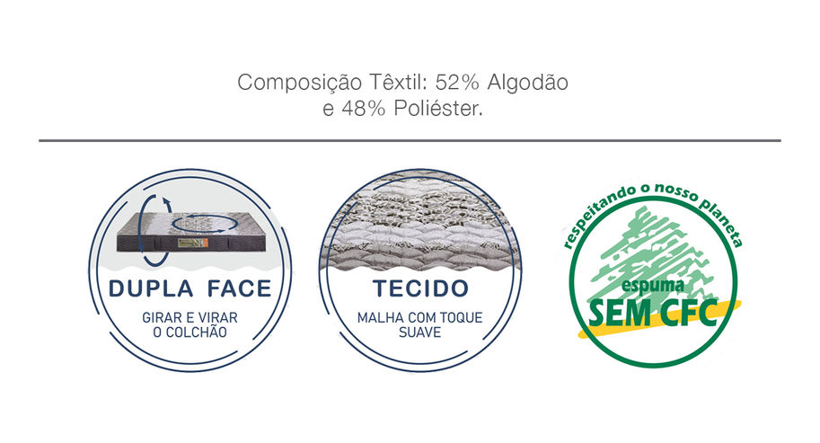 O colchão é construído com duas camadas de espuma D26 e uma AG28 entre elas para proporcionar um bem-estar único às suas noites.